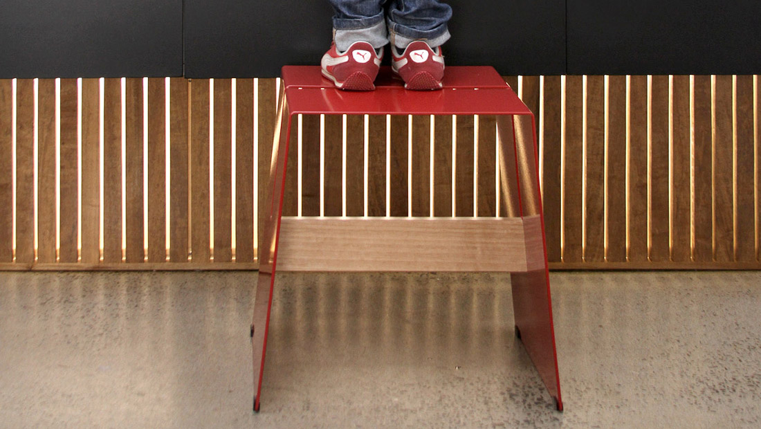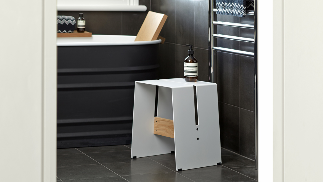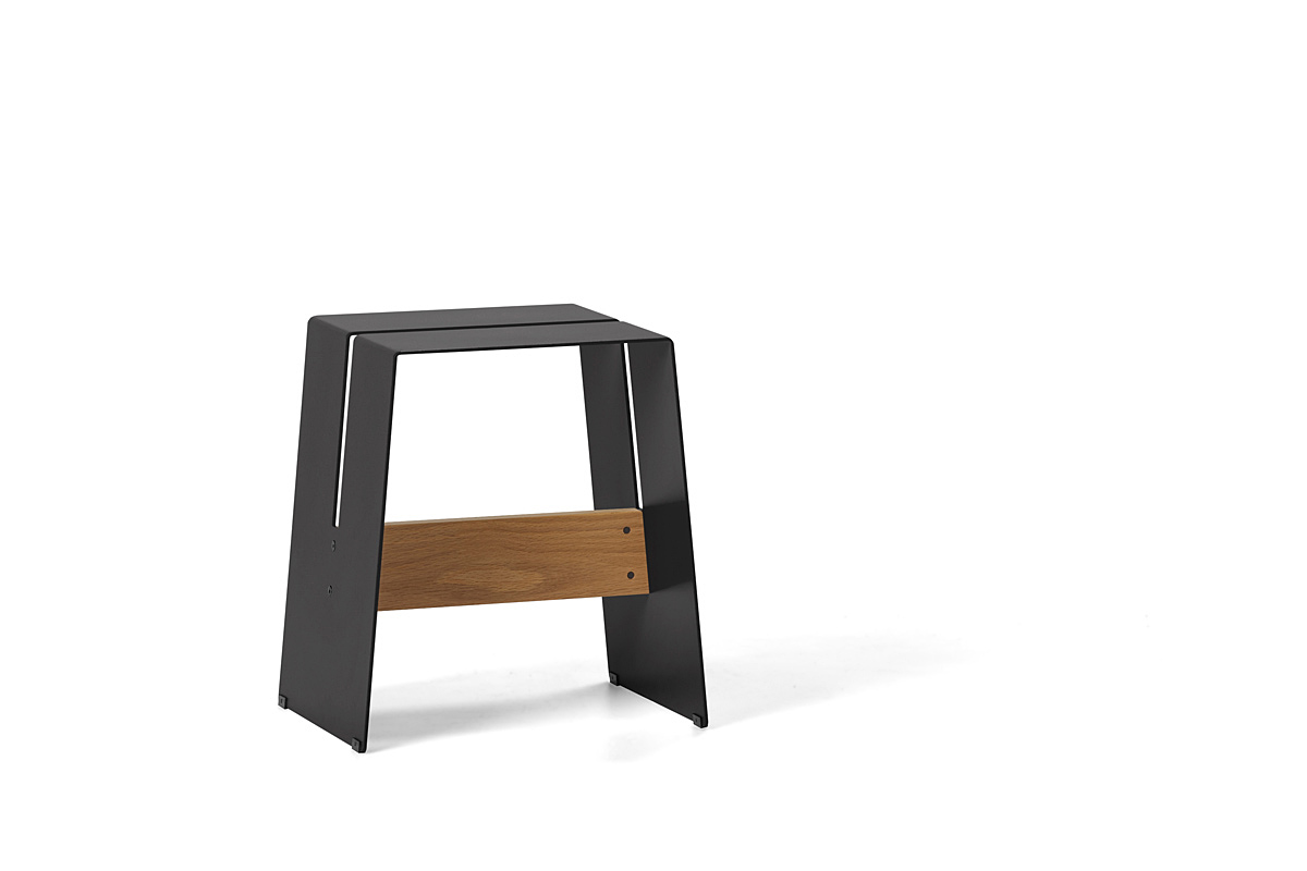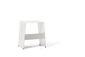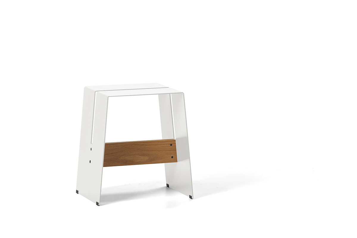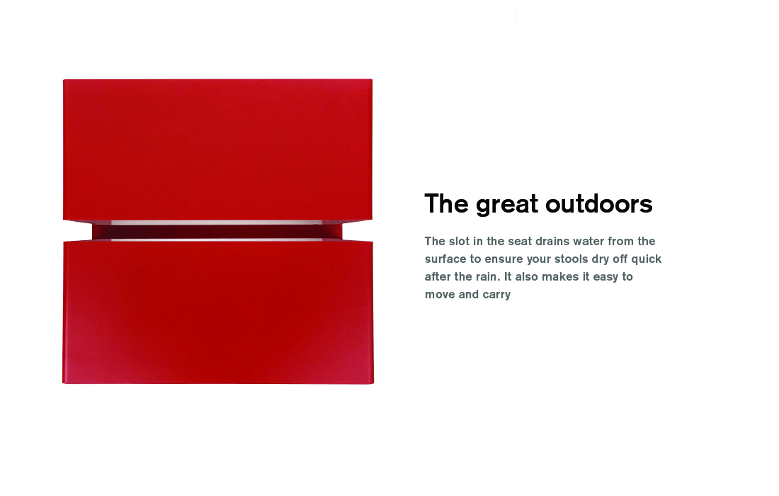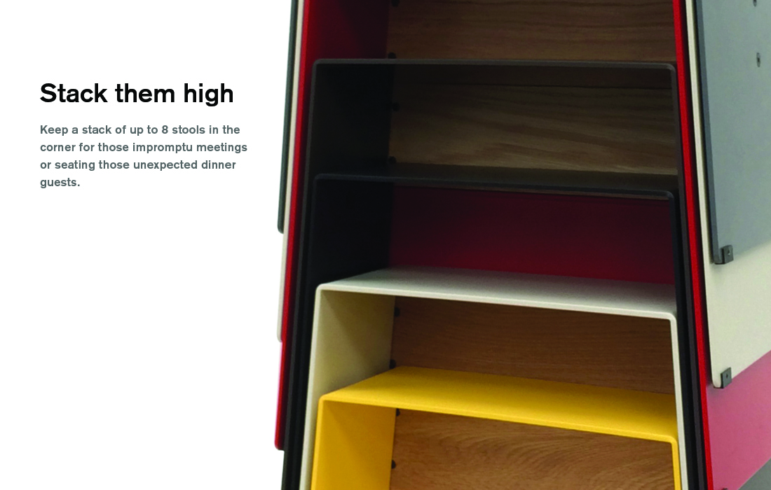 The A2 stool is one of those indispensable items – not just a stool, it’s a step ladder, a bedside table, a footstool, a perch for the laptop or an extra seat for the unexpected dinner guests. Durable and cost effective, this playful stool is constructed from powder coated aluminium or ply with cross rails in aluminium or solid oak. For use both indoors and out. Stools can be stacked up to eight high.