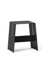 The A2 stool is one of those indispensable items – not just a stool, it’s a step ladder, a bedside table, a footstool, a perch for the laptop or an extra seat for the unexpected dinner guests. Durable and cost effective, this playful stool is constructed from powder coated aluminium or ply with cross rails in aluminium or solid oak. For use both indoors and out. Stools can be stacked up to eight high.